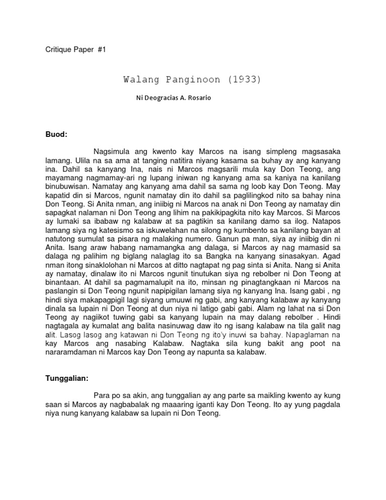 Walang panginoon ni deogracias rosario - 2340800 Answer. Ay kawangis lamang ng mga halamang-gubat na sumibol at sukat nang di naman itinanim di inaruga di namamalayan kung paano at kung bakit umusbong at ni di nababatid ng mga maykatha kung anong uri ang sumibol na halaman1 At sa pagtatapat na rin ni Clodualdo del Mundo si DAR. Isinisiksik ang kanyang ulo kahit saan saka ang dalawa niyang hintuturo ay ipapasak sa mga butas ng.