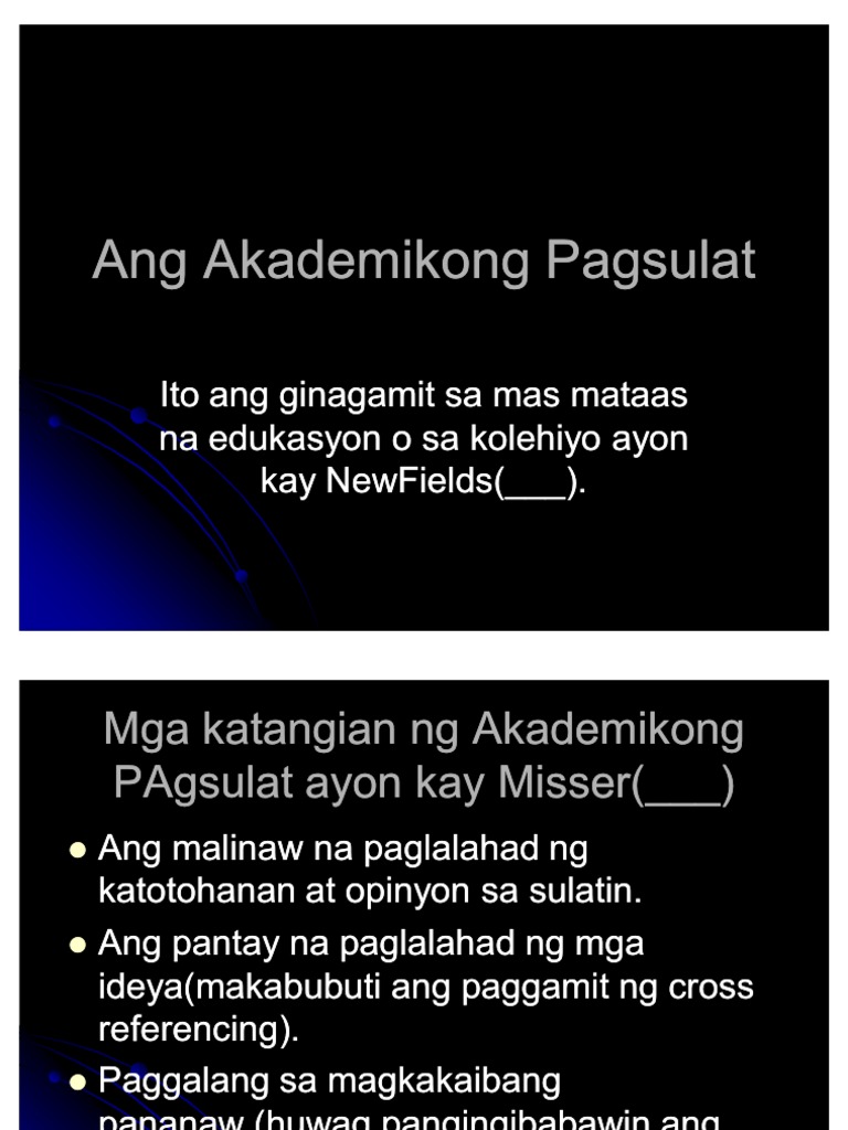 Ang akademikong pagsulat ay dapat maglahad ng importanteng. 4 Kawastuhang Gramatikal Wasto ang gamit ng bantas baybay ng mga salita at pagkakagamit ng mallaking letra 4 KABUUAN. PAGLALAHAD Tinatawag din itong pag papaliwanag na nakasentro sa pagbibigay linaw sa mga pangyayari sanhi at bunga.