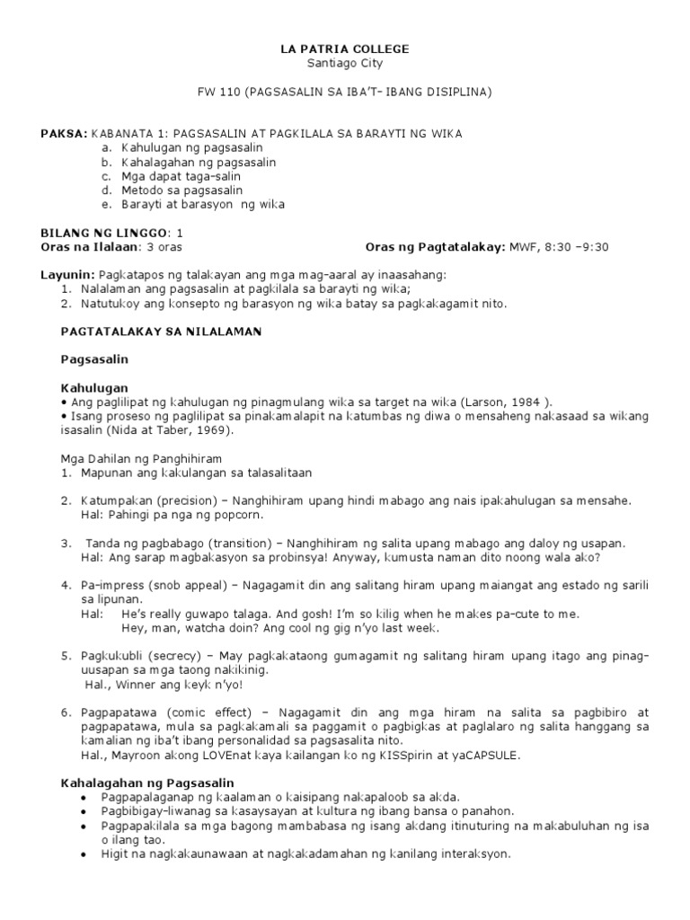 W1 Modyul Pagsasalin Sa Ibat Ibang Disiplina Pdf