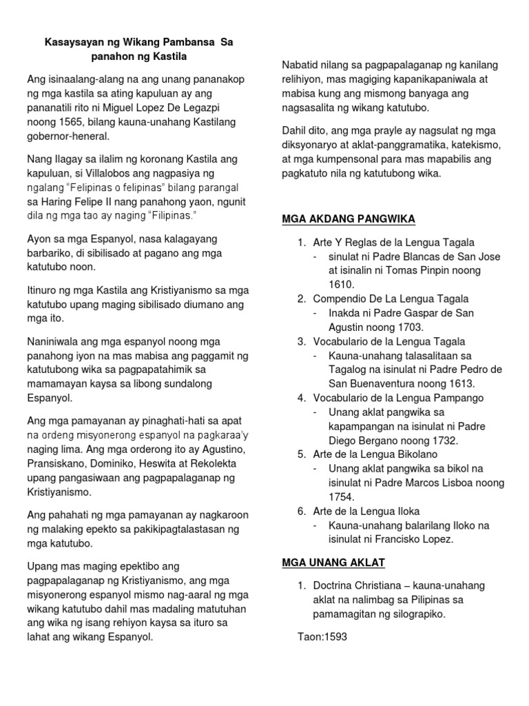 Kasaysayan Ng Wikang Pambansa Sa Panahon Ng Kastila Pdf